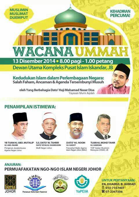 Muslimin & Muslimat dijemput hadir ke Forum Perdana bersama tokoh-tokoh hebat tanah air yang akan mengupas tajuk mengenai peranan Islam, Institusi Diraja dan kesejahteraan negeri.